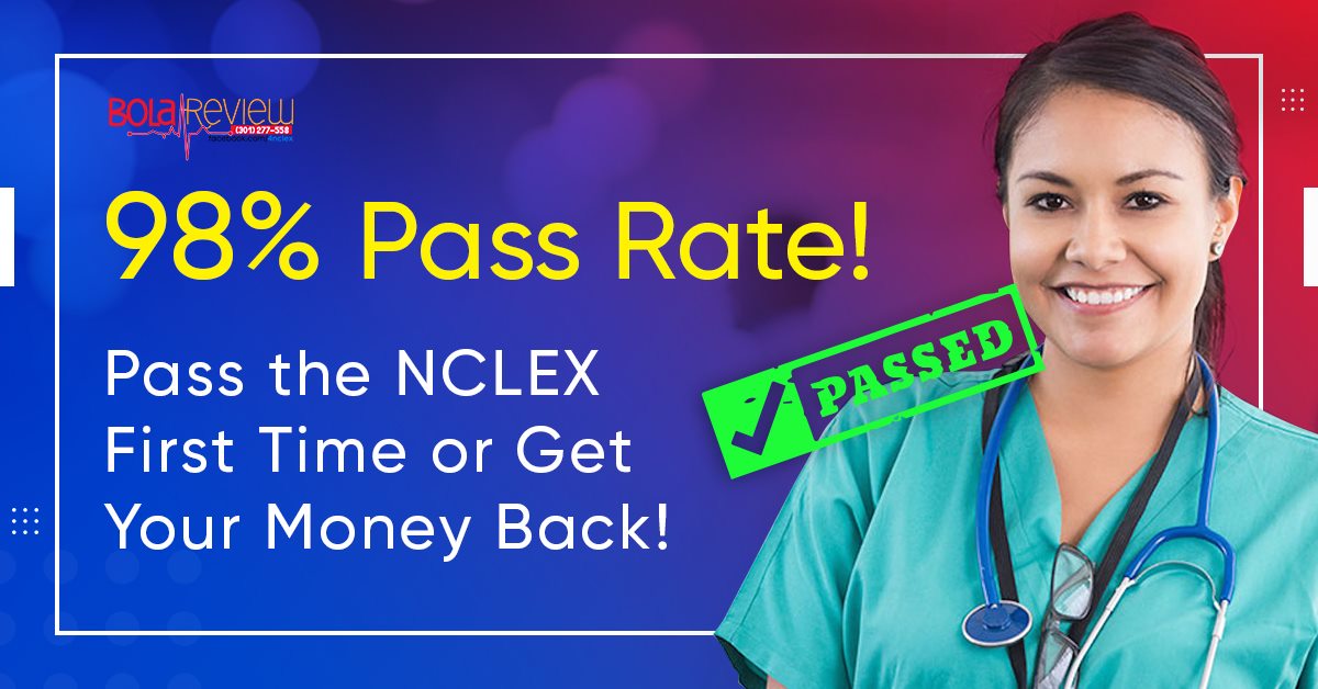 At Bola Review, we have a real understanding of what it takes to pass NCLEX® exam. For over 18 years, we have maintained a 98% success rate in NCLEX.